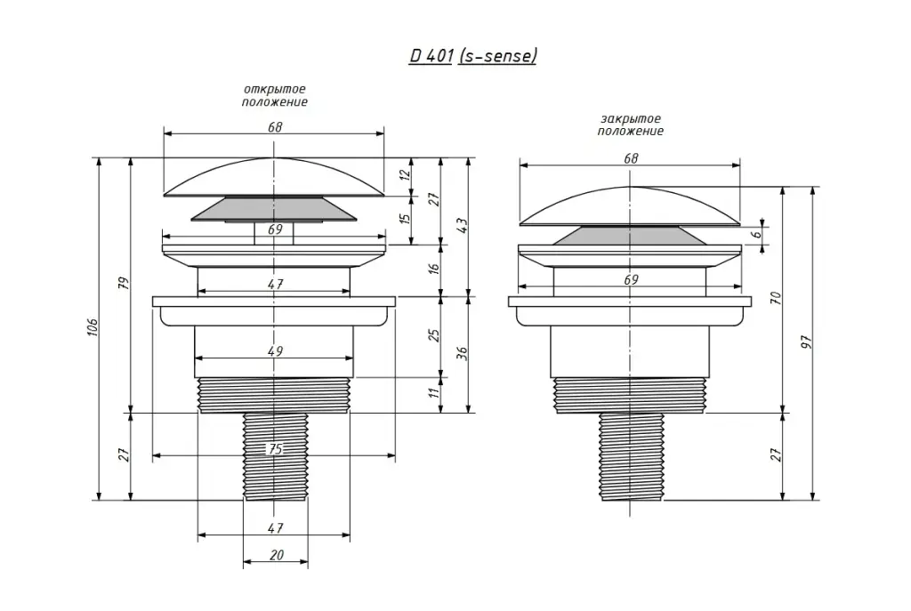 Salini D 401 Донный клапан для ванны из S-Stone, Click-Clack цвет: RAL матовый 151301MF