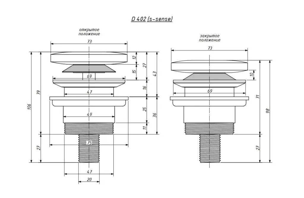 Salini D 402 Донный клапан для ванны из S-Sense, Click-Clack цвет: белый матовый 152201M