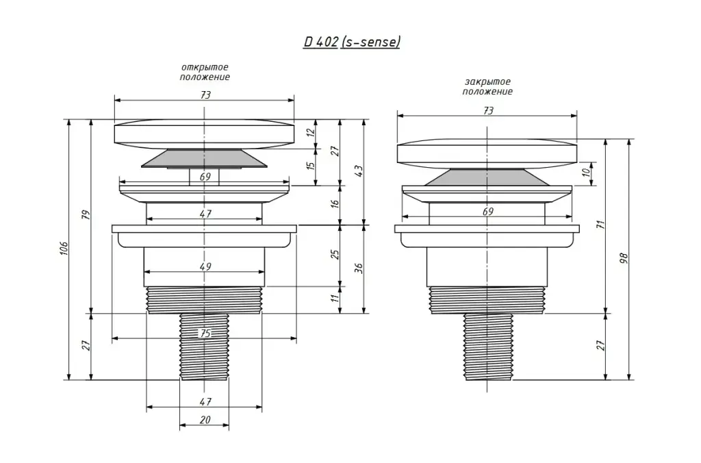Salini D 402 Донный клапан для ванны из S-Stone, Click-Clack цвет: белый матовый 152301M