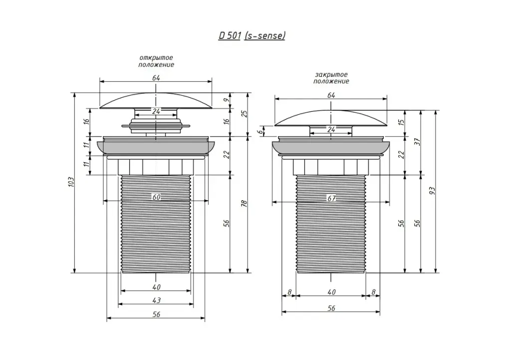 Salini D 501 Донный клапан для раковины из S-Stone, Click-Clack без перелива цвет: RAL матовый 161301MF