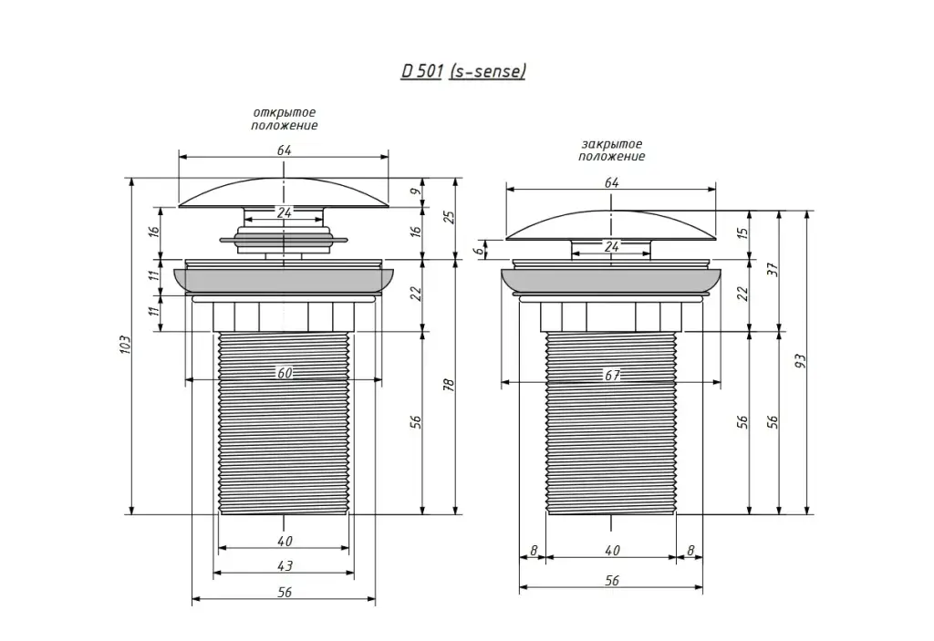 Salini D 501 Донный клапан для раковины из S-Stone, Click-Clack без перелива цвет: белый матовый 161301M