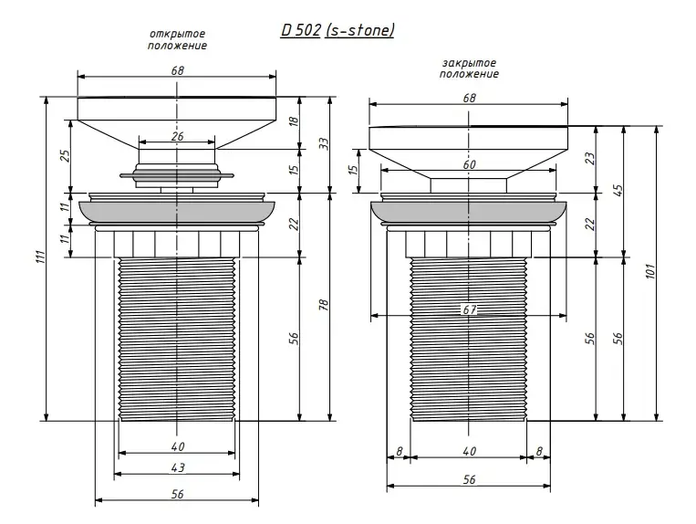 Salini D 502 Донный клапан для раковины из S-Sense, Click-Clack без перелива цвет: RAL глянцевый 162201GF