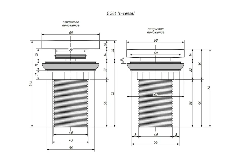 Salini D 504 Донный клапан для раковины из S-Sense, Click-Clack без перелива цвет: белый глянцевый 162202G
