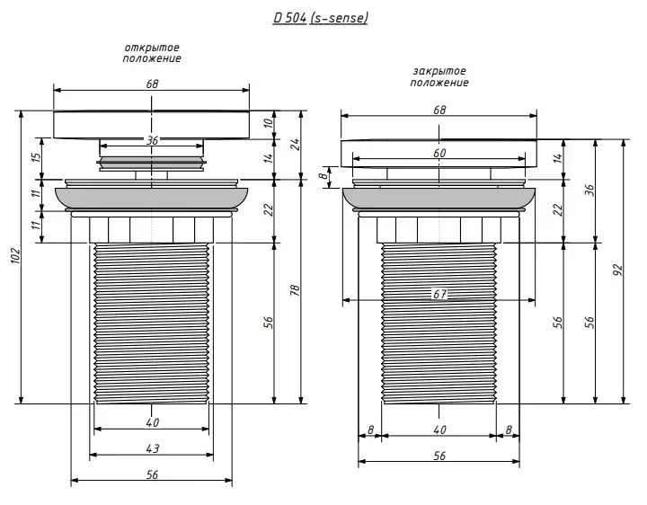 Salini D 504 Донный клапан для раковины из S-Stone, Click-Clack без перелива цвет: белый матовый 162302M