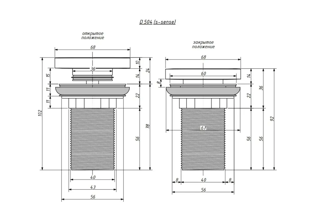 Salini D 504 Донный клапан для раковины из S-Stone, Click-Clack без перелива цвет: RAL матовый 162302MF