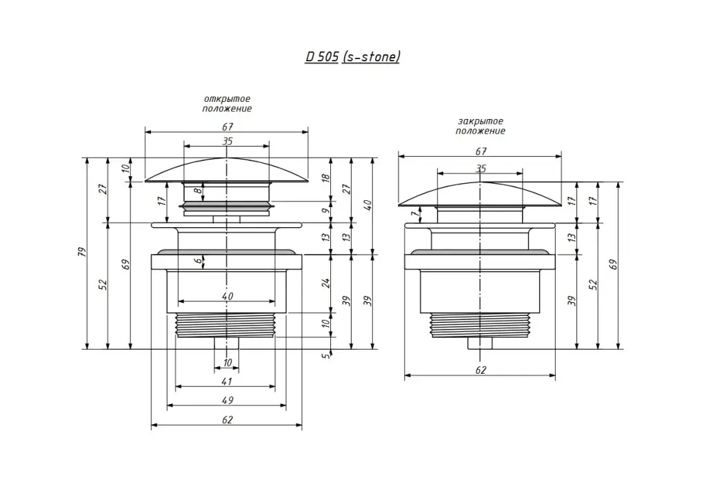 Salini D 505 Донный клапан для раковины из S-Sense, Click-Clack универсальный цвет: RAL глянцевый 164201GF