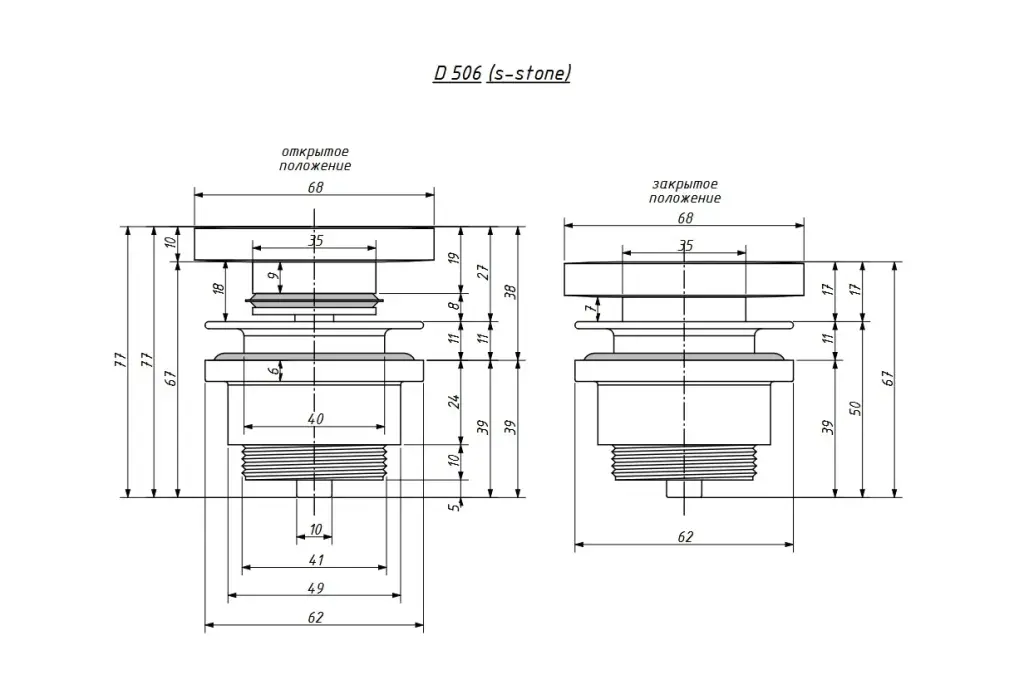 Salini D 506 Донный клапан для раковины из S-Sense, Click-Clack универсальный цвет: RAL глянцевый 162205GF