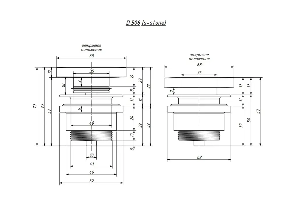 Salini D 506 Донный клапан для раковины из S-Stone, Click-Clack универсальный цвет: белый матовый 162305M