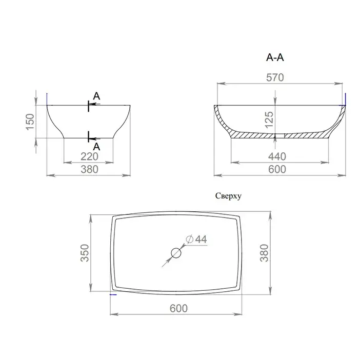 Salini Gloria Раковина накладная 48х38х12cм, без отв., без перелива, S-Stone, цвет: белый матовый
