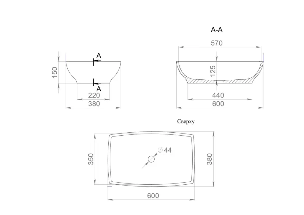 Salini Gloria 04 S-Stone Раковина накладная 60х38х15h, матовый цвет: RAL 1102204MF