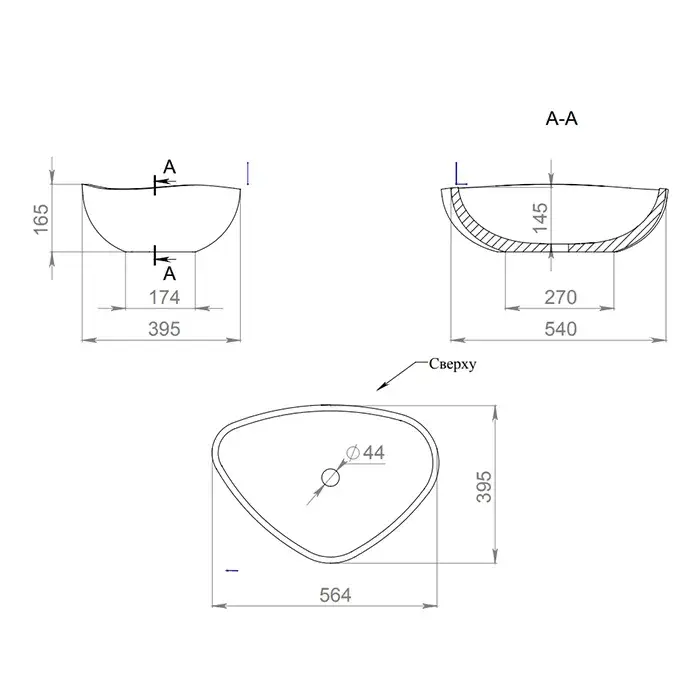 Salini Gloria Раковина накладная 56х44х12.5cм, без отв., без перелива, S-Stone, цвет: белый матовый