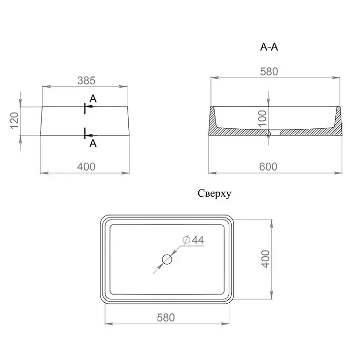 Salini Gloria Раковина накладная 59.5х39.5х12.5cм, без отв., без перелива, S-Stone, цвет: белый матовый