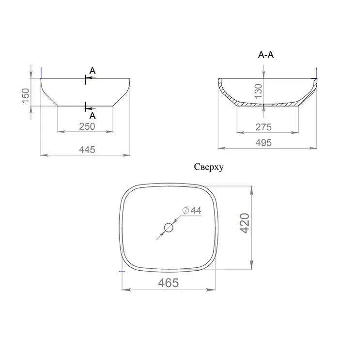 Salini Gloria Раковина накладная 48х38х12cм, без отв., без перелива, S-Stone, цвет: белый матовый