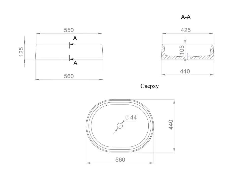 Salini Gloria 10 S-Stone Раковина накладная 56х44х12,5h, матовый цвет: RAL 1102211MF
