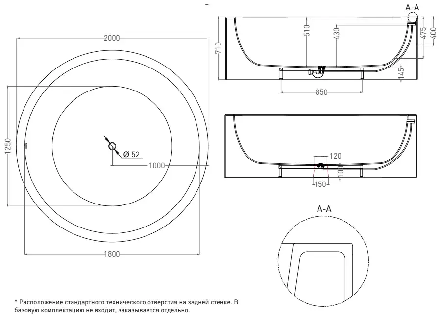 Salini Isola Ванна отдельностоящая 200x200x71 cм со встроенным сливом-переливом, каркасом, цвет: белый глянцевый