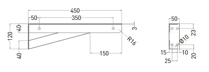Salini Кронштейн для подвесной раковины 5х45х12 см, левый, цвет: RAL полностью матовый 1903305MF