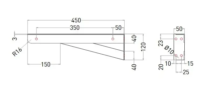 Salini Кронштейн для подвесной раковины 5х45х12 см, правый, цвет: RAL полностью матовый 1903304MF