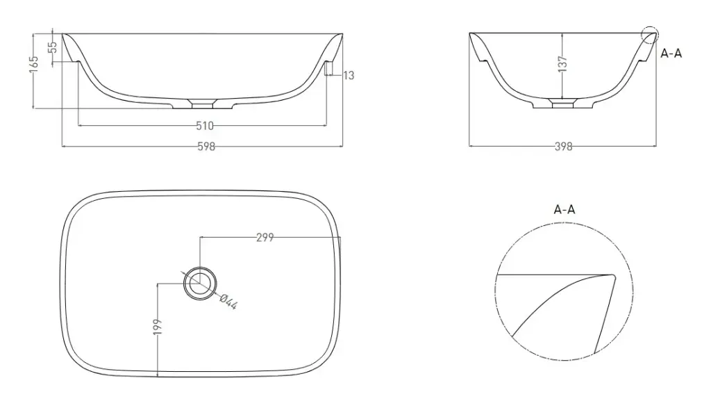 Salini Marea Раковина 60х40х17см., без отв., встраиваемая снизу, S-Sense, цвет: белый глянцевый