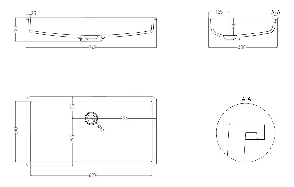 Salini Marea Раковина 60х40х17см., без отв., встраиваемая снизу, S-Sense, цвет: белый глянцевый