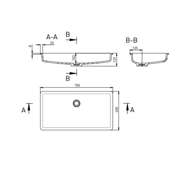 Salini Marea Раковина 60х40х17см., без отв., встраиваемая снизу, S-Sense, цвет: белый глянцевый