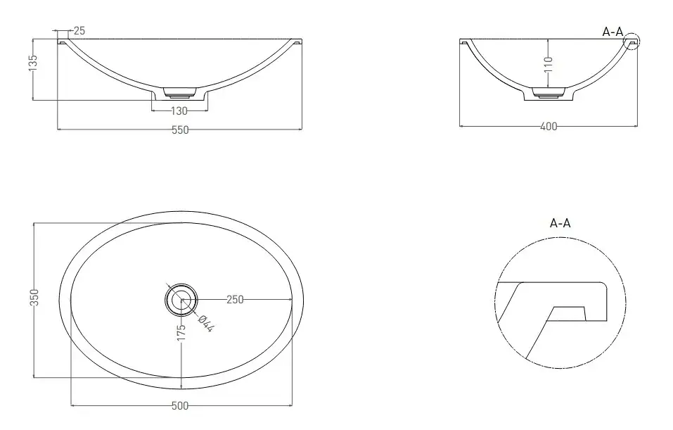Salini Marea 11 Раковина встраиваемая снизу 55х40 см, без перелива, цвет: RAL глянцевый 1802111GF