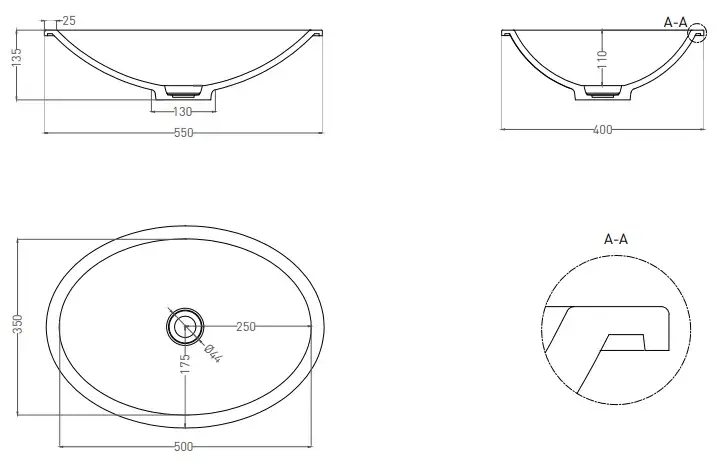 Salini Marea 11 Раковина встраиваемая снизу овальная 55x40 см, цвет: белый матовый 1802211M