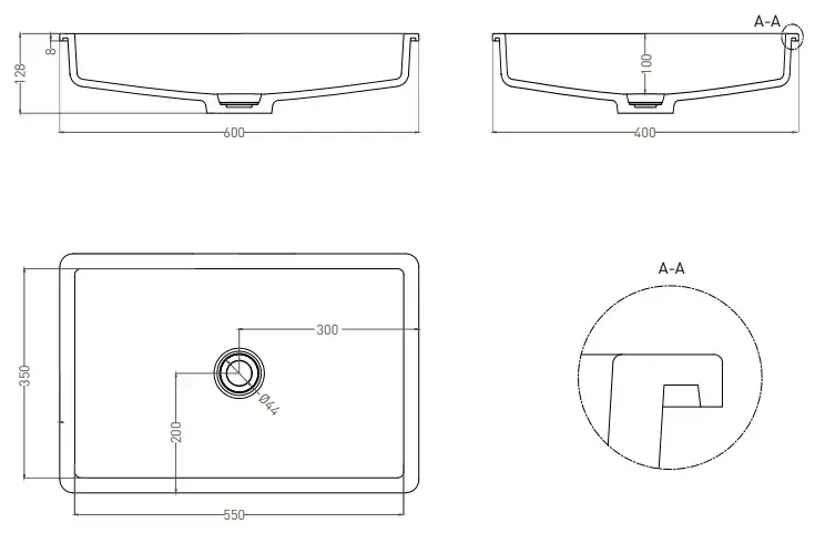 Salini Marea Раковина 60х40х17см., без отв., встраиваемая снизу, S-Sense, цвет: белый глянцевый