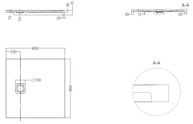 Salini Oasi Душевой поддон 80x80x3h см, матовый цвет: RAL полностью 120323MF