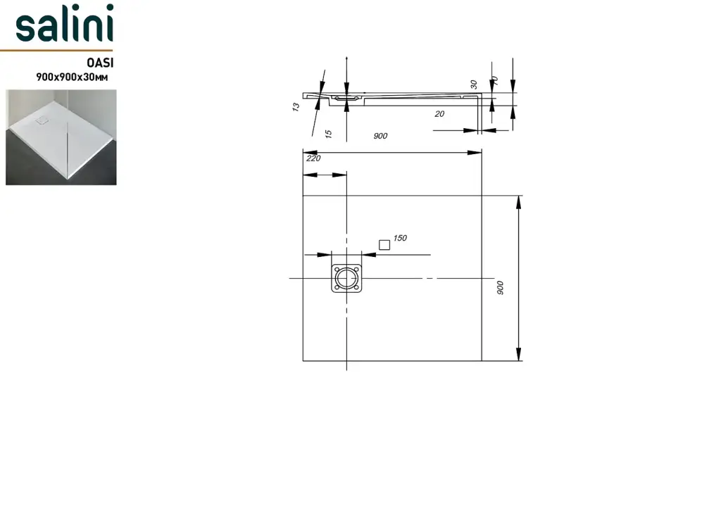 Salini Oasi Поддон 90х90х3cм, с сифоном, S-Stone, цвет: белый матовый