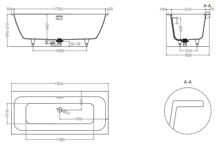 Salini Orlanda Ванна из S-Sense встраиваемая, прямоугольная, 170х75 см, цвет: белый глянцевый 102017G