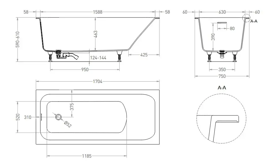 Salini Orlanda Kit Ванна из S-Sense встраиваемая, прямоугольная, 170х75 см, цвет: белый глянцевый 102117G