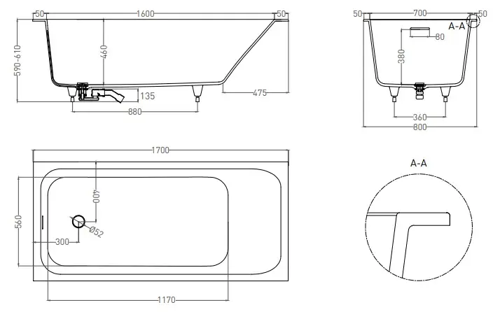 Salini Orlanda Kit Ванна из S-Sense встраиваемая, прямоугольная, 170х75 см, цвет: белый глянцевый 102117G