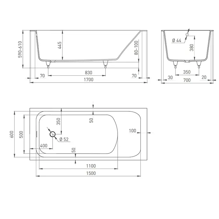 Salini Orlanda Kit Ванна из S-Sense встраиваемая, прямоугольная, 170х75 см, цвет: белый глянцевый 102117G
