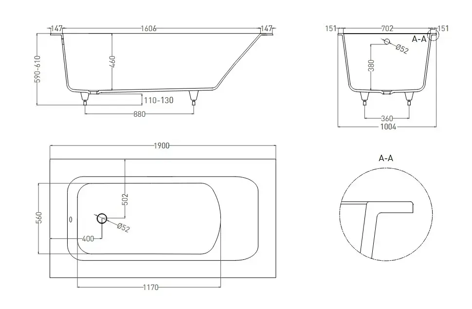 Ванна, Регулируемые ножки до 2 см