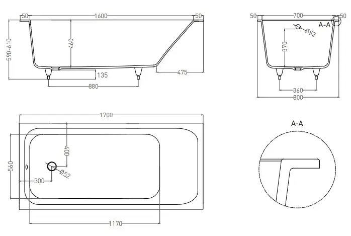 Salini Orlanda Kit Ванна из S-Sense встраиваемая, прямоугольная, 170х75 см, цвет: белый глянцевый 102117G