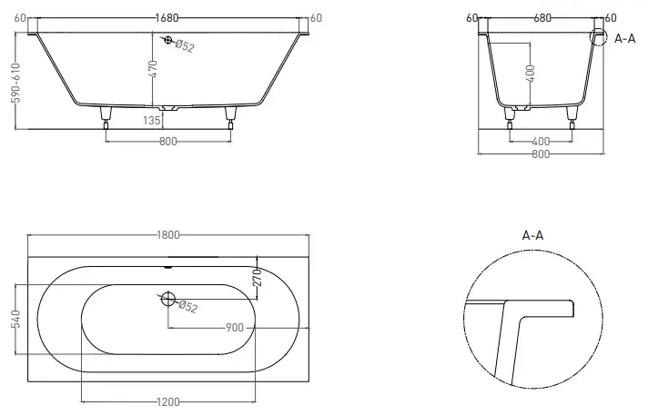 Salini Ornella Axis KIT 170 Встраиваемая ванна 170х70х60см., мат-л: S-Sense, "Up&Down", цвет: белый матовый