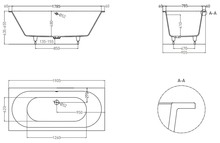 Salini Ornella Axis 190 Kit Встраиваемая ванна 190х90х60см, прямоугольная, материал: S-Sense, донный клапан "Up&Down", слив-перелив, цвет: белый глянцевый