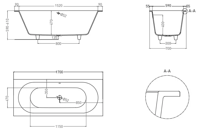 Salini Ornella Axis KIT 170 Встраиваемая ванна 170х70х60см., мат-л: S-Sense, "Up&Down", цвет: белый матовый