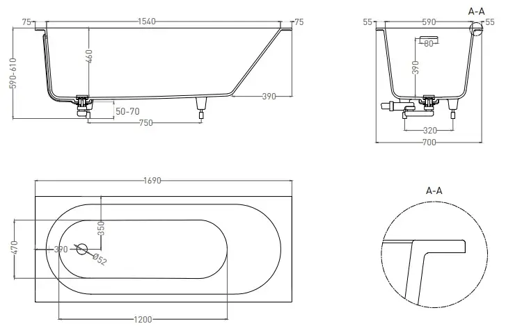 Salini Ornella Axis KIT 170 Встраиваемая ванна 170х70х60см., мат-л: S-Sense, "Up&Down", цвет: белый матовый