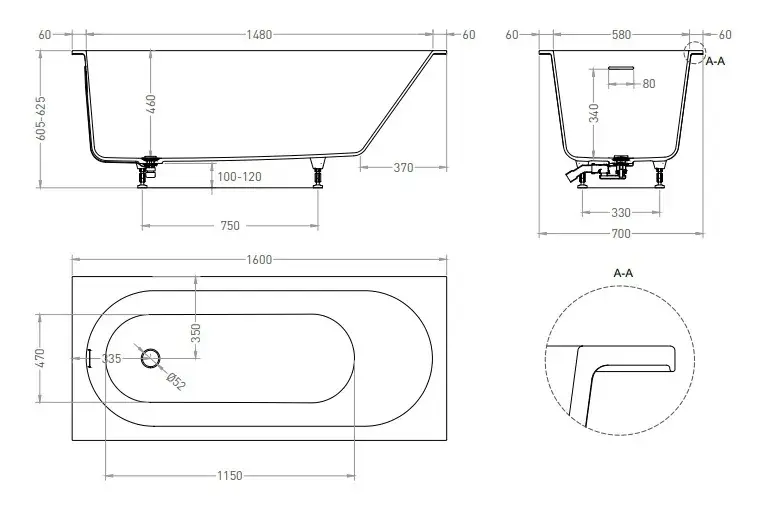 Salini Ornella Axis KIT 170 Встраиваемая ванна 170х70х60см., мат-л: S-Sense, "Up&Down", цвет: белый матовый