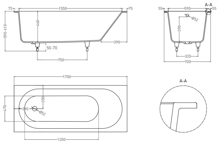 Salini Ornella Axis KIT 170 Встраиваемая ванна 170х70х60см., мат-л: S-Sense, "Up&Down", цвет: белый матовый