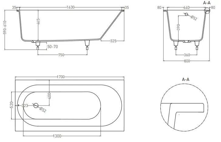 Salini Ornella Axis KIT 170 Встраиваемая ванна 170х70х60см., мат-л: S-Sense, "Up&Down", цвет: белый матовый