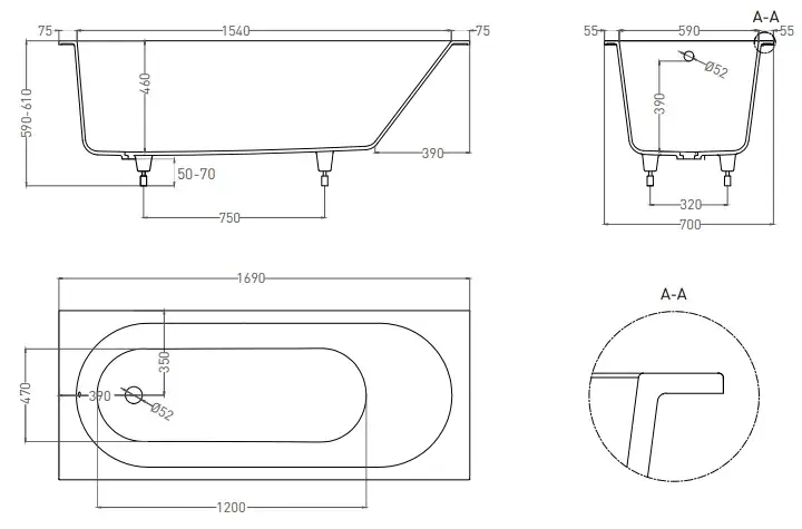 Salini Ornella Axis KIT 170 Встраиваемая ванна 170х70х60см., мат-л: S-Sense, "Up&Down", цвет: белый матовый