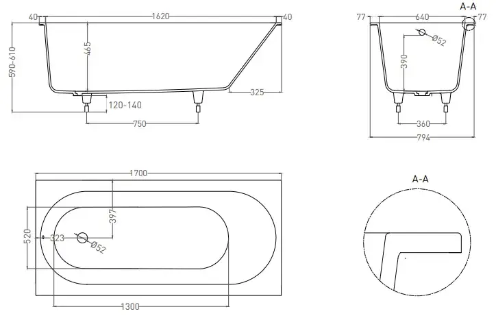 Salini Ornella Axis KIT 170 Встраиваемая ванна 170х70х60см., мат-л: S-Sense, "Up&Down", цвет: белый матовый