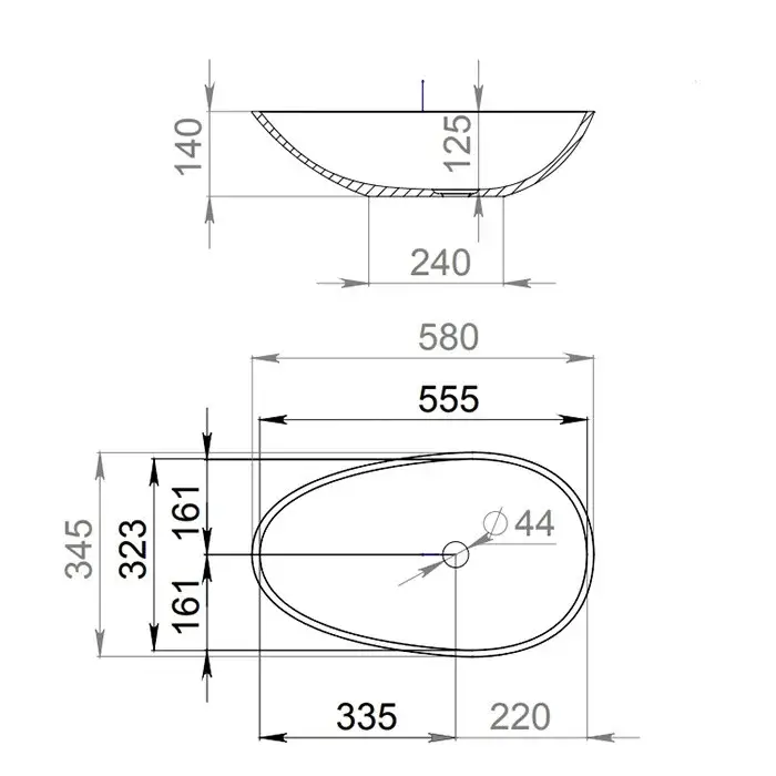 Salini Paola S-Sense Раковина накладная 58х34,5х14h, цвет: белый глянцевый 1101101G