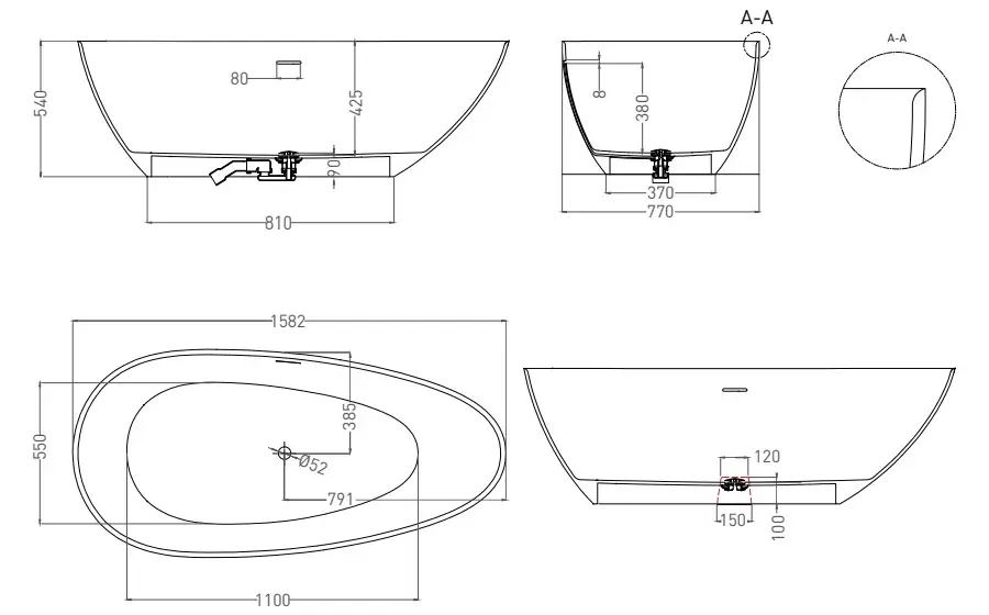 Salini Paola Ванна отдельностоящая 160х77х57см., донный клапан "Up&Down", сифон, слив-перелив, материал: S-Stone, цвет: белый матовый