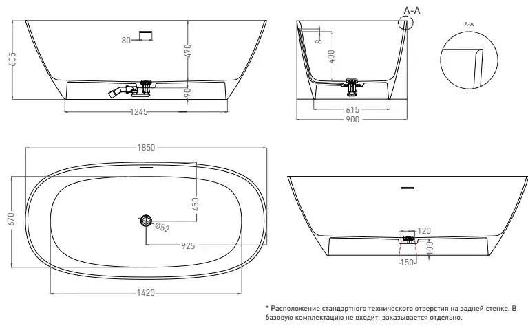 Salini Sofia Ванна отдельностоящая 165x75x60см, донный клапан "Up&Down", сифон, слив-перелив, S-Stone, цвет: белый матовый