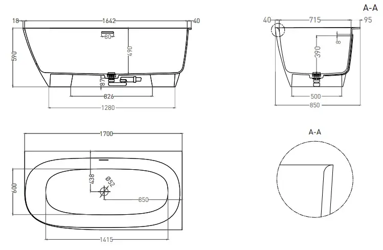 Salini Sofia Ванна отдельностоящая 170x80cм, донный клапан "Up&Down", сифон, слив-перелив, материал: S-Sense, цвет: белый глянец