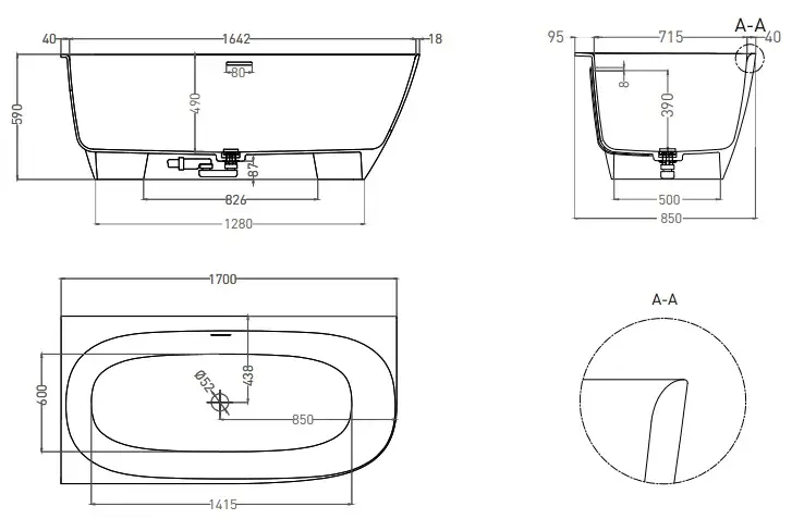 Salini Sofia Ванна отдельностоящая 170x80cм, донный клапан "Up&Down", сифон, слив-перелив, материал: S-Sense, цвет: белый глянец
