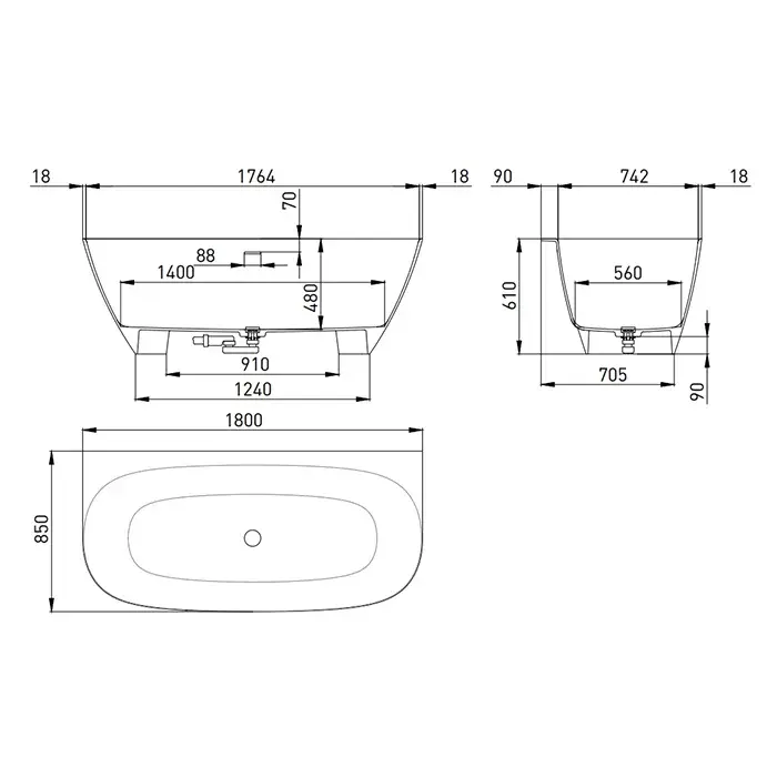 Salini Sofia Ванна из S-Stone пристенная 180x85 см, цвет: белый матовый 102523M
